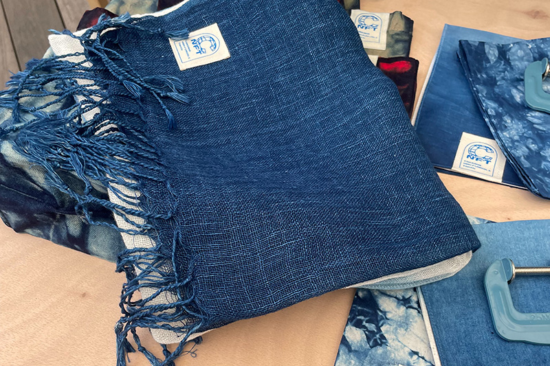 Aizome, also known as Japan Blue, is a represented Japanese traditional craft. Since indigo has insect repellent and antiseptic effects, it can be used as clothing for long-term use. In the past, it was widely spread throughout Edo. The “one-of-a-kind items” character is a great advantage of indigo dyeing products in addition to their beautiful artistry. Indigo dyeing is a high-quality product made by advanced dyeing techniques by craftsmen. In short, the dye used for indigo dyeing is in a “living” state. The state of the liquid changes depending on the temperature, humidity, period, etc. Indigo molecules have a low adhesion rate to the fabric, so the degree of dyeing varies greatly depending on the type of fabric. For these reasons, craftsmen repeat the dyeing process multiple times to adjust the finished color. The one-of-a-kind physical properties of indigo dye products continue even after the product is completed. Indigo molecules, which have weak chemical bonds, will mostly settle down over time, but they will fade slightly due to changes in humidity, rubbing, and ultraviolet light from sunlight during use.