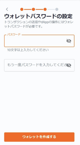 次に、NFT購入やトークン受信の際に必要な送金パスワードを設定します。