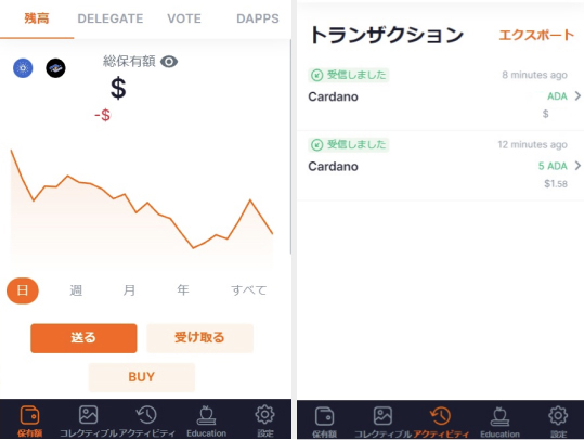 1-2分程度待つと、自分のアドレスにADAが着金します。
